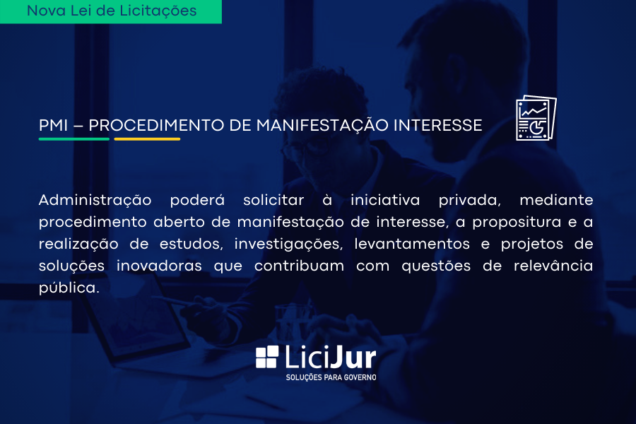Conforme previsto no art. 81 da nova Lei, a Administração poderá solicitar à iniciativa privada, mediante procedimento aberto de manifestação de interesse, a propositura e a realização de estudos, investigações, levantamentos e projetos de soluções inovadoras que contribuam com questões de relevância pública.