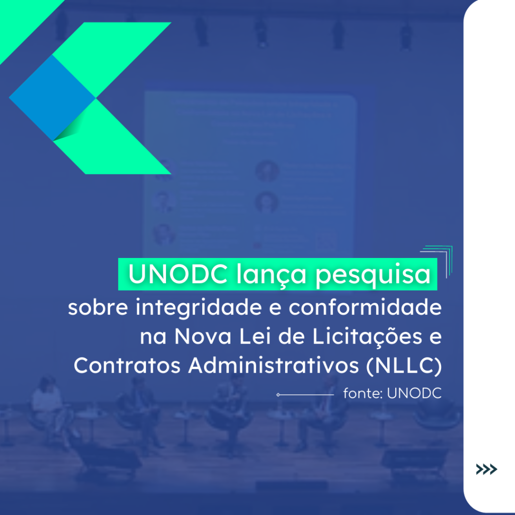 O Escritório das Nações Unidas sobre Drogas e Crime (UNODC), lançou a Pesquisa sobre Integridade e Conformidade na Nova Lei de Licitações e Contratos Administrativos (Lei nº 14.133/2021), em um evento híbrido, realizado de forma presencial no Instituto Serzedello Corrêa, no Tribunal de Contas da União (TCU), em Brasília, DF, e nos canais do YouTube, de UNODC, TCU e CGU.
